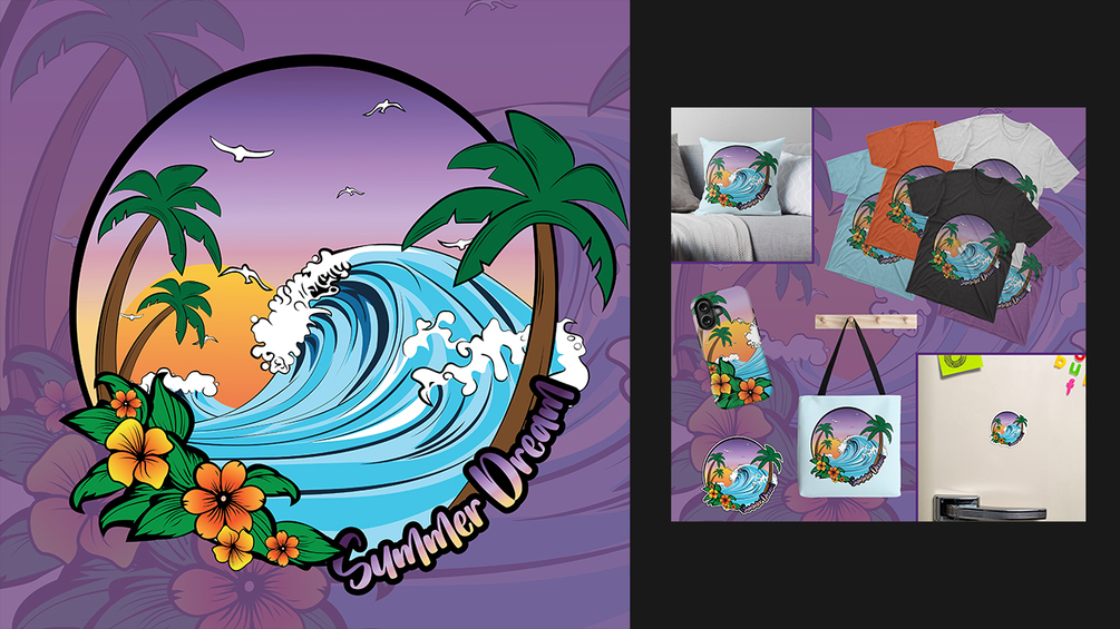 Illustration Clipart for Print: Summer Dream Tropical Sunset