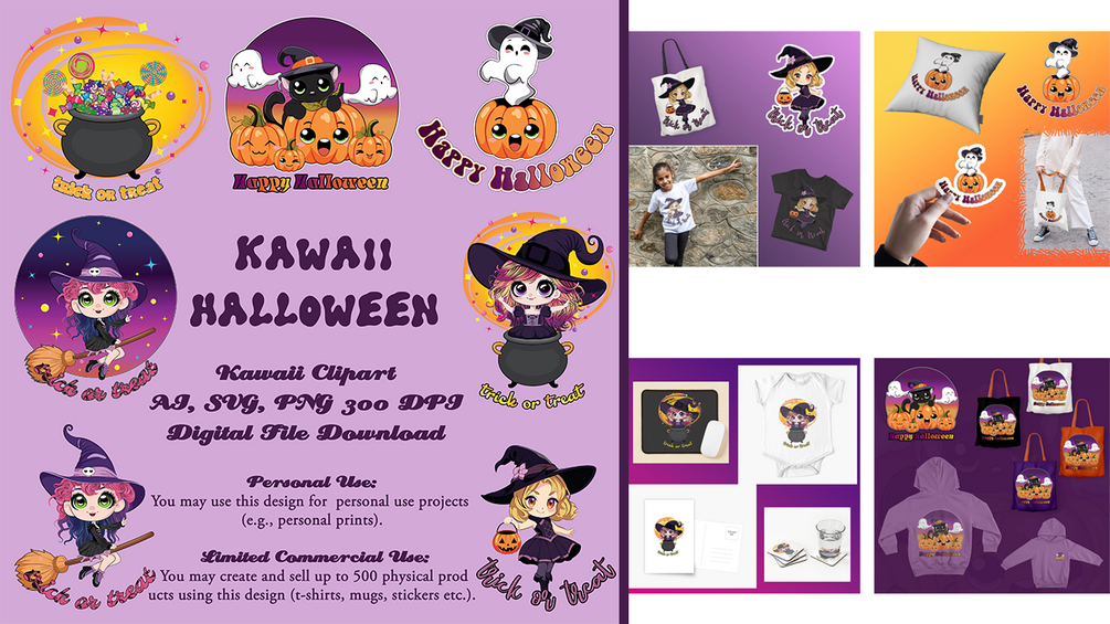 Kawaii Halloween Clipart for print or digital use.